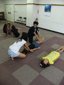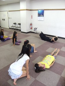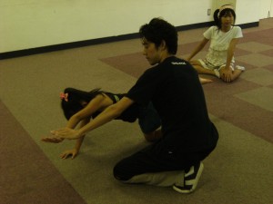 先生自ら腹筋指導です