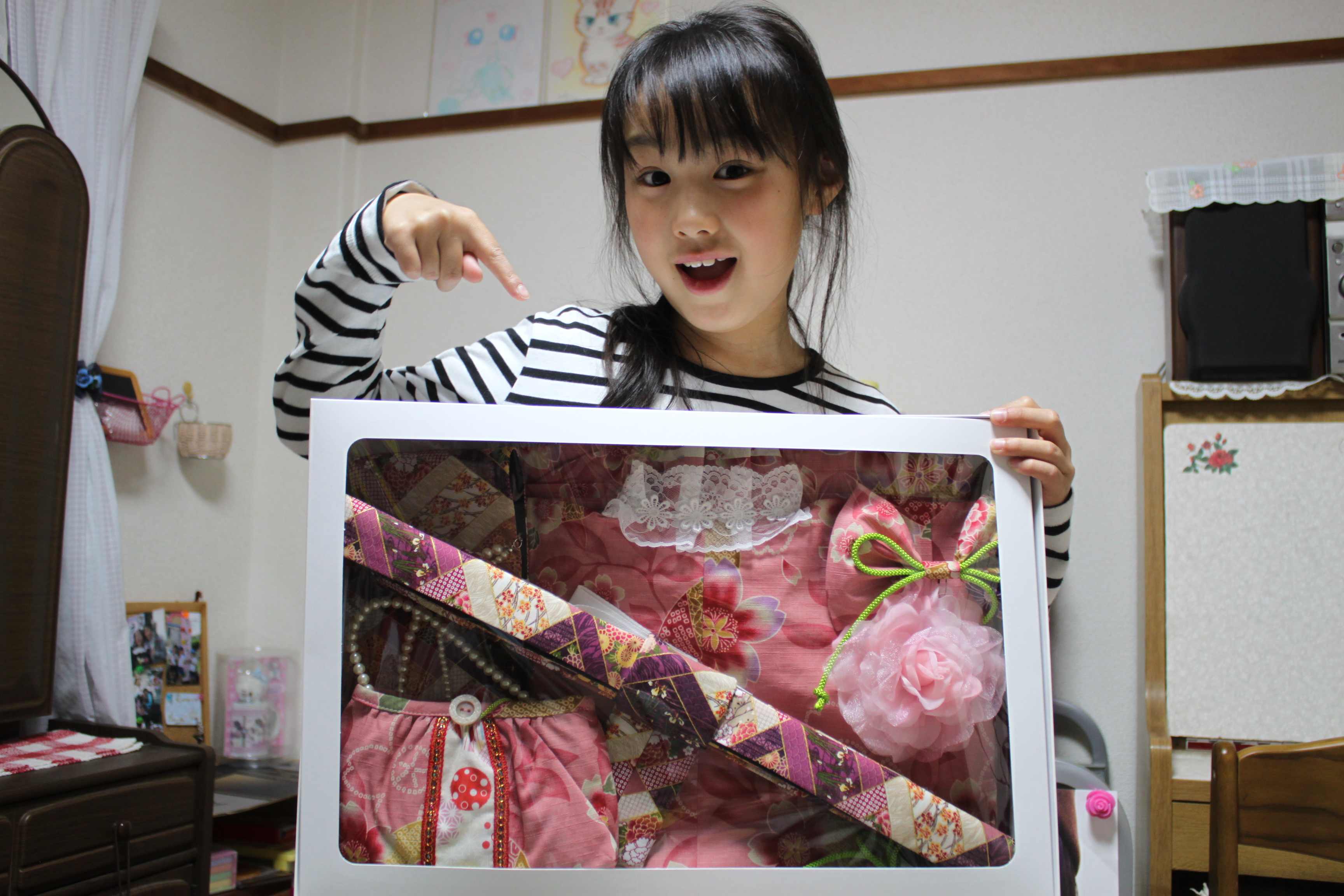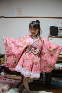 おおっ 和服だ ちょっと 派手かな!!