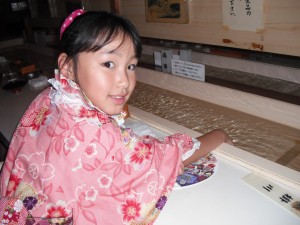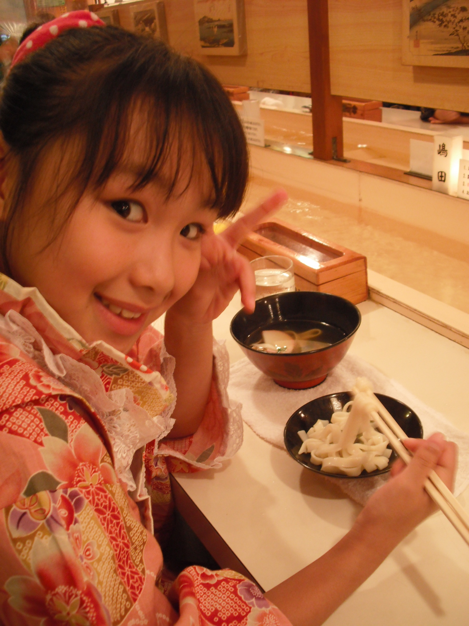 きしめんがながれてくる おみせできしめんをたべました