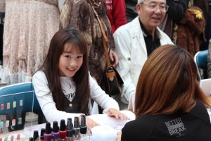 専門学校のネイルアートをやってもらうために並んでいるよ!