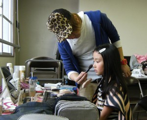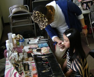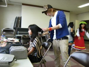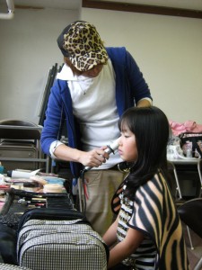 まずはメイクから 丁寧にメイクしてもらっています。
