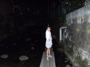 深夜の川辺にきました!!